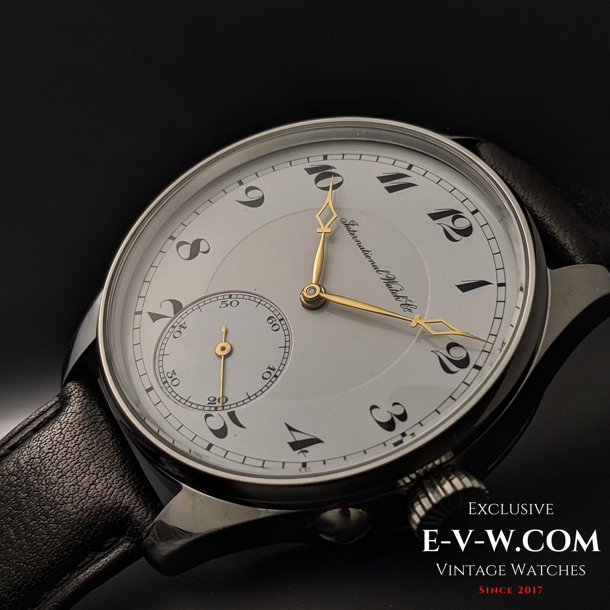 Antique 108 Years Old IWC pocket-watch movement (from 1917) . As a pocket-to-wrist conversion powered by an IWC finger-bridge pocket-watch calibre 66—the same architecture that launched the first Portugieser (Reference 325) in 1939—this conversion echoes the very origins of the icon. Available in our shop. Movement no. 67xxxx maps to 1917 in IWC’s movement tables. The finger-bridge cal. 66 (19‴ H6) is a manual-wind, 16-jewel pocket calibre running at 18,000 A/h. Full serial appears in the buyer documents. Large wrist case with exhibition back showcases the period finishing.