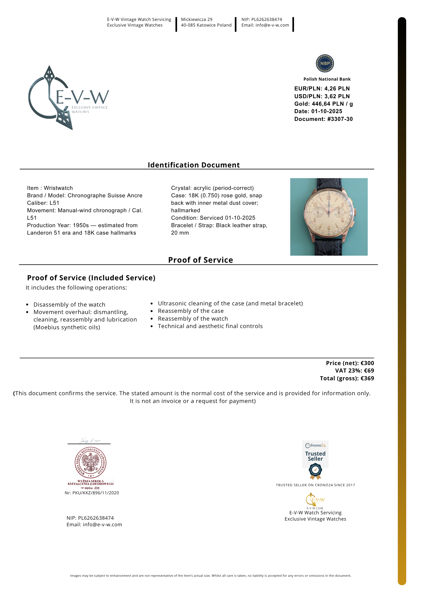 📄 An official service certificate is provided, listing key technical and identifying details — ideal for insurance, provenance, or future resale.
