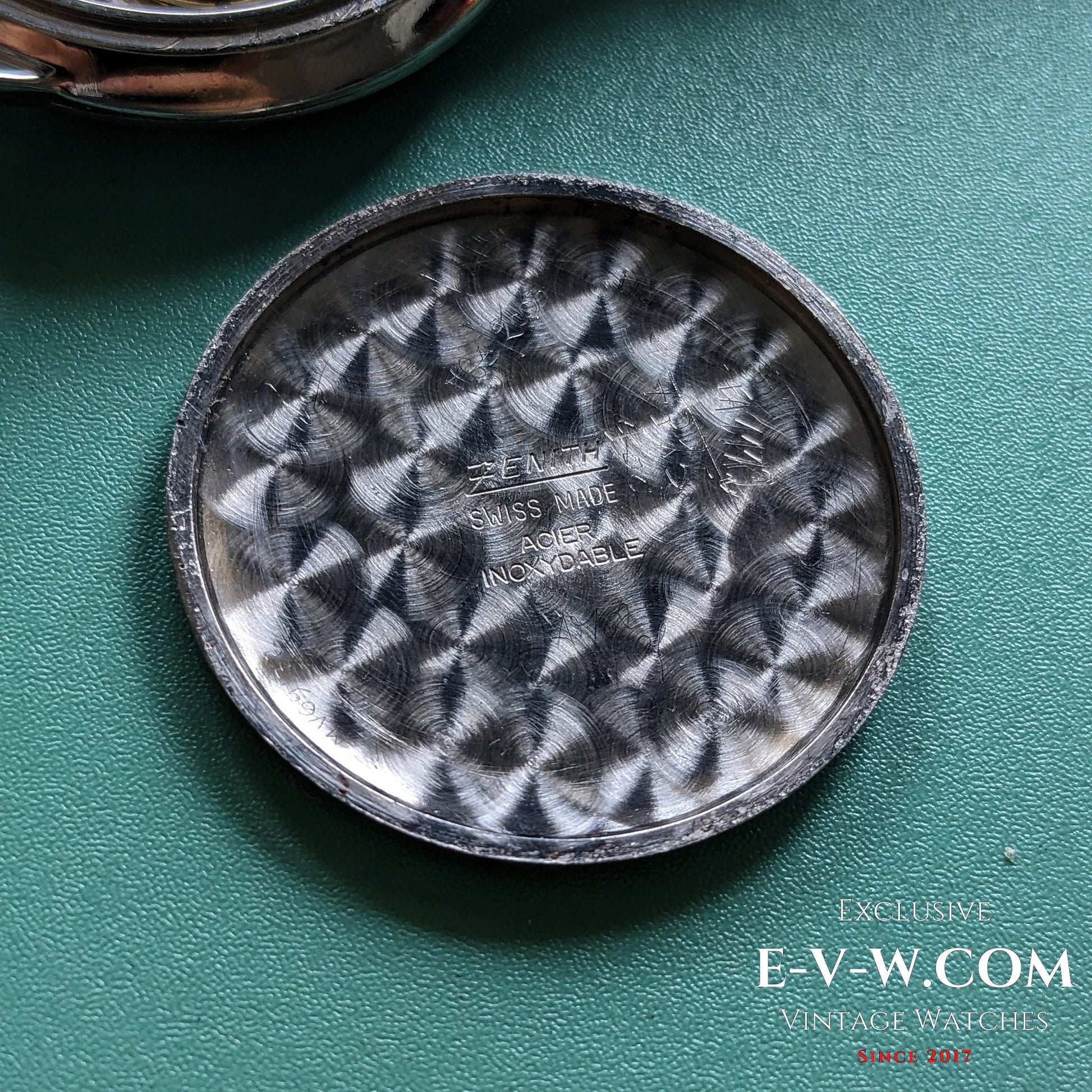 Crown: Zenith-signed; winds and sets smoothly