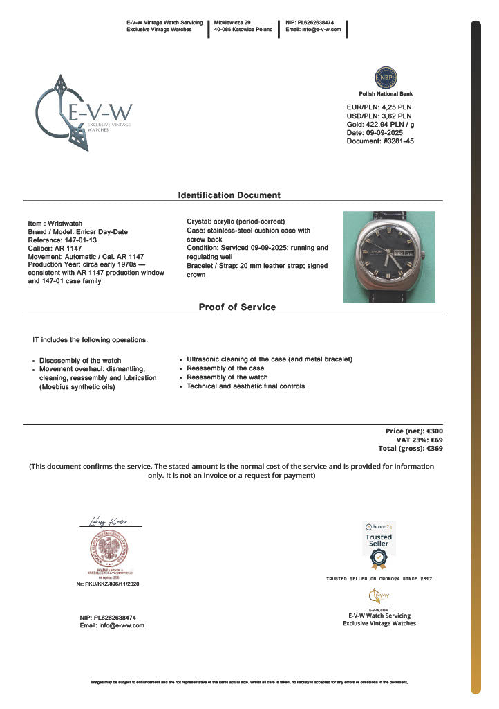 Enicar Day-Date | Ref. 147-01-13 | Cal. AR 1147 | 1970s | Serviced