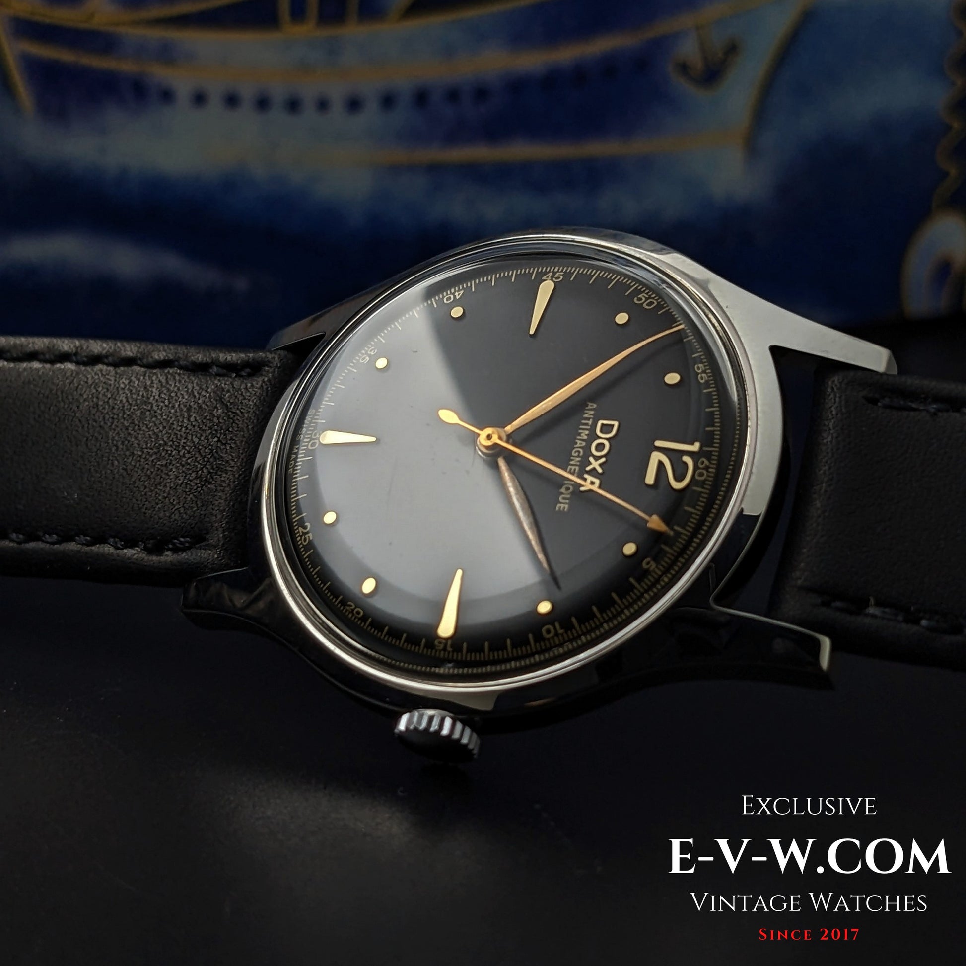 Large 38 mm mid-century DOXA with restored black dial and reliable cal. 1080 — a versatile daily vintage.
