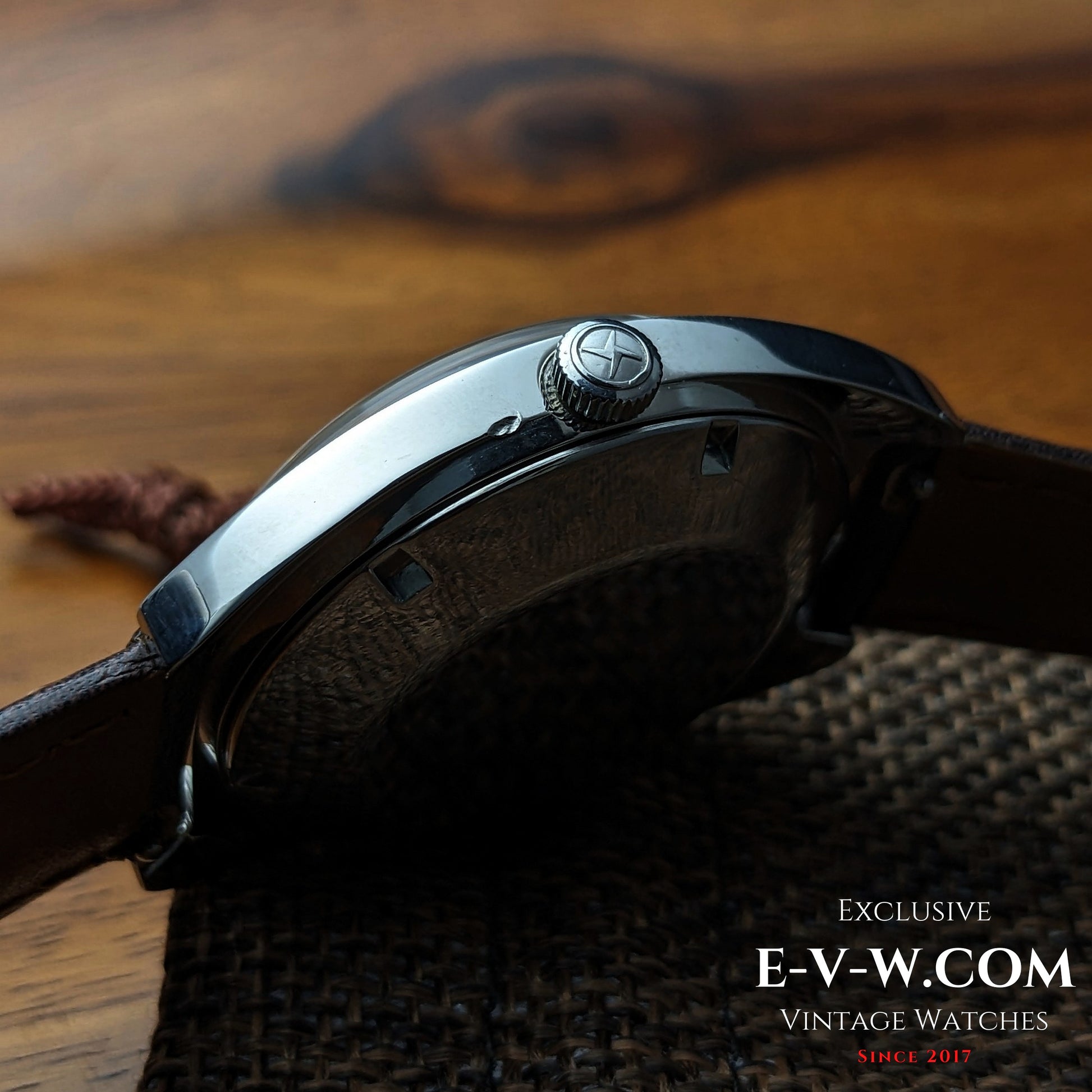 Case: Stainless steel cushion case with screw back; honest vintage wear.