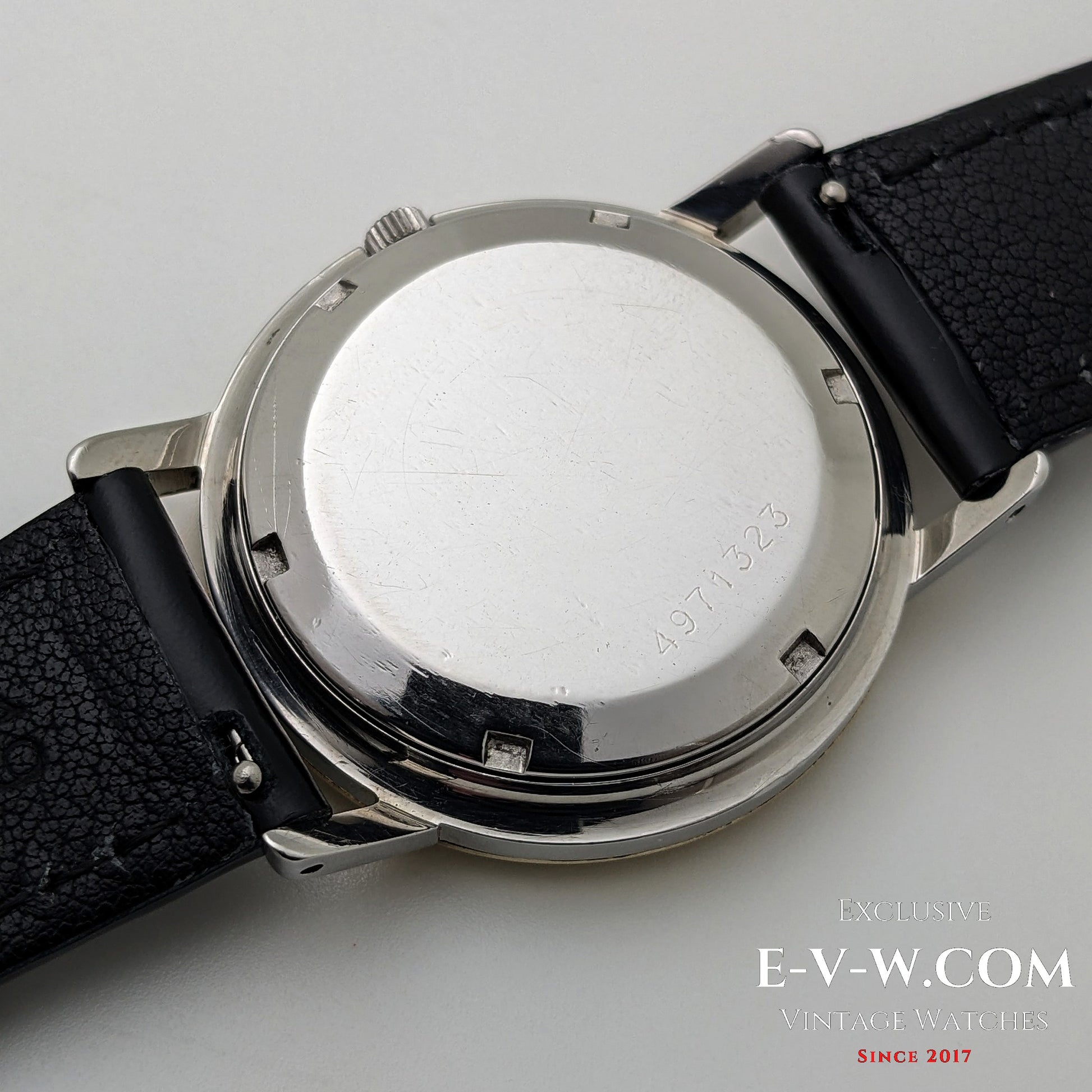 The Eterna-Matic is one of the most significant milestones in 20th-century watchmaking, defining the standard for modern automatic movements. This specific 1959 model (movement serial 4443128) utilizes the revolutionary five ball-bearing system introduced by Eterna in 1948 to reduce friction in the rotor. This innovation was so successful that the five dots became the brand’s permanent logo. Featuring the refined Caliber 1422, this stainless steel piece offers a masterclass in mid-century minimalism, combining a sharp 34mm case with an original, understated dial. It represents a period when Eterna was at the absolute forefront of Swiss mechanical engineering.