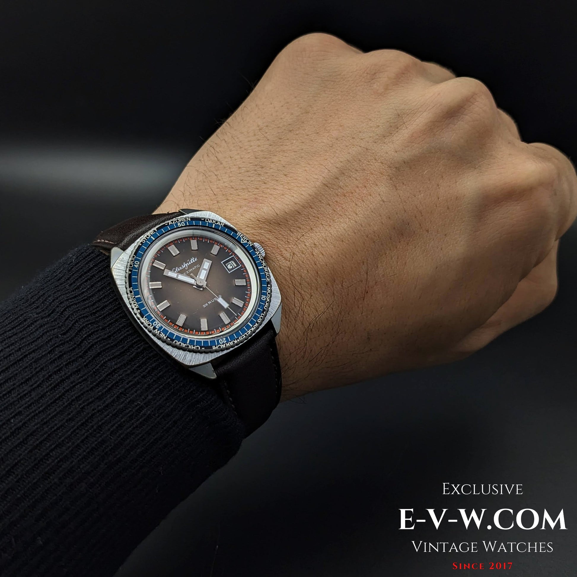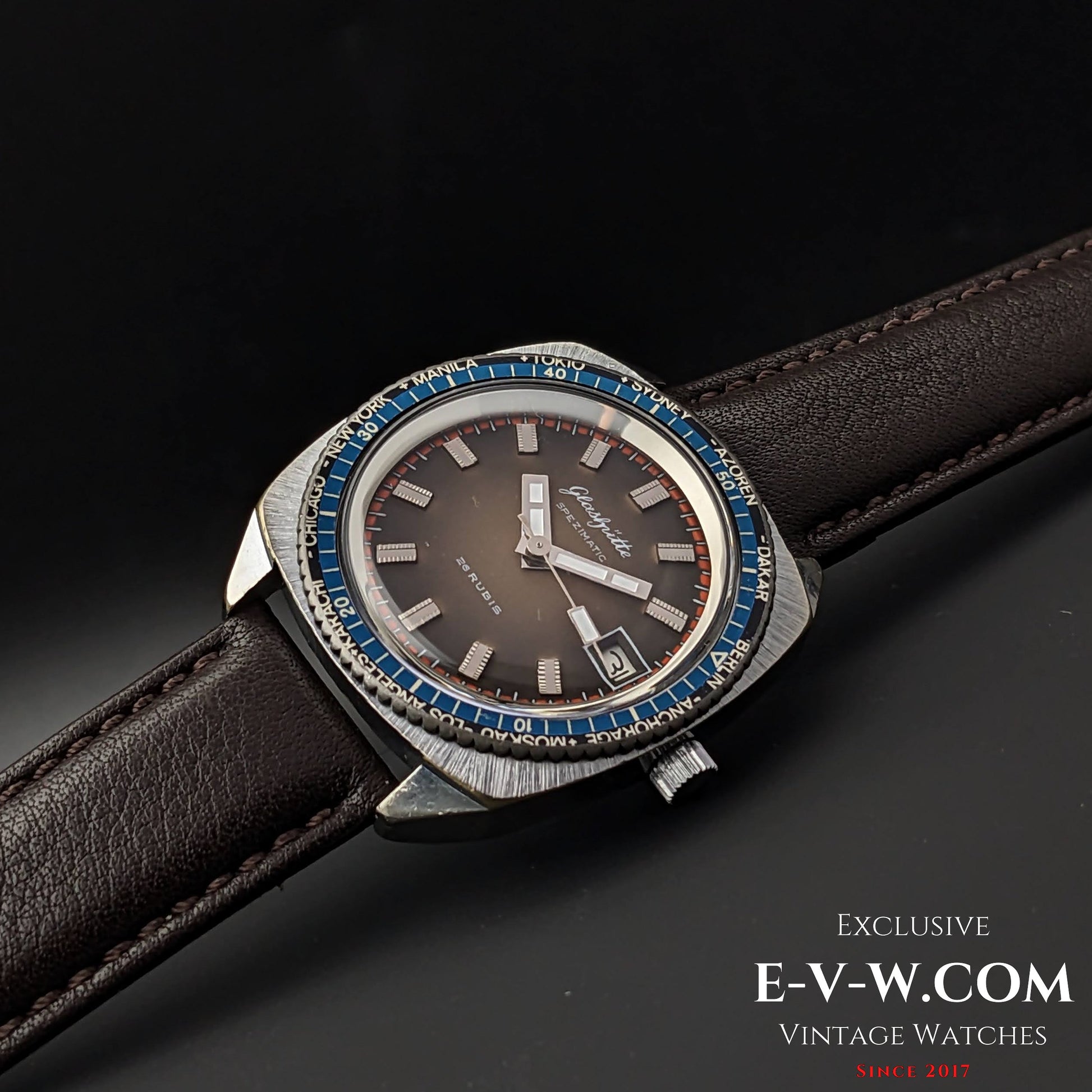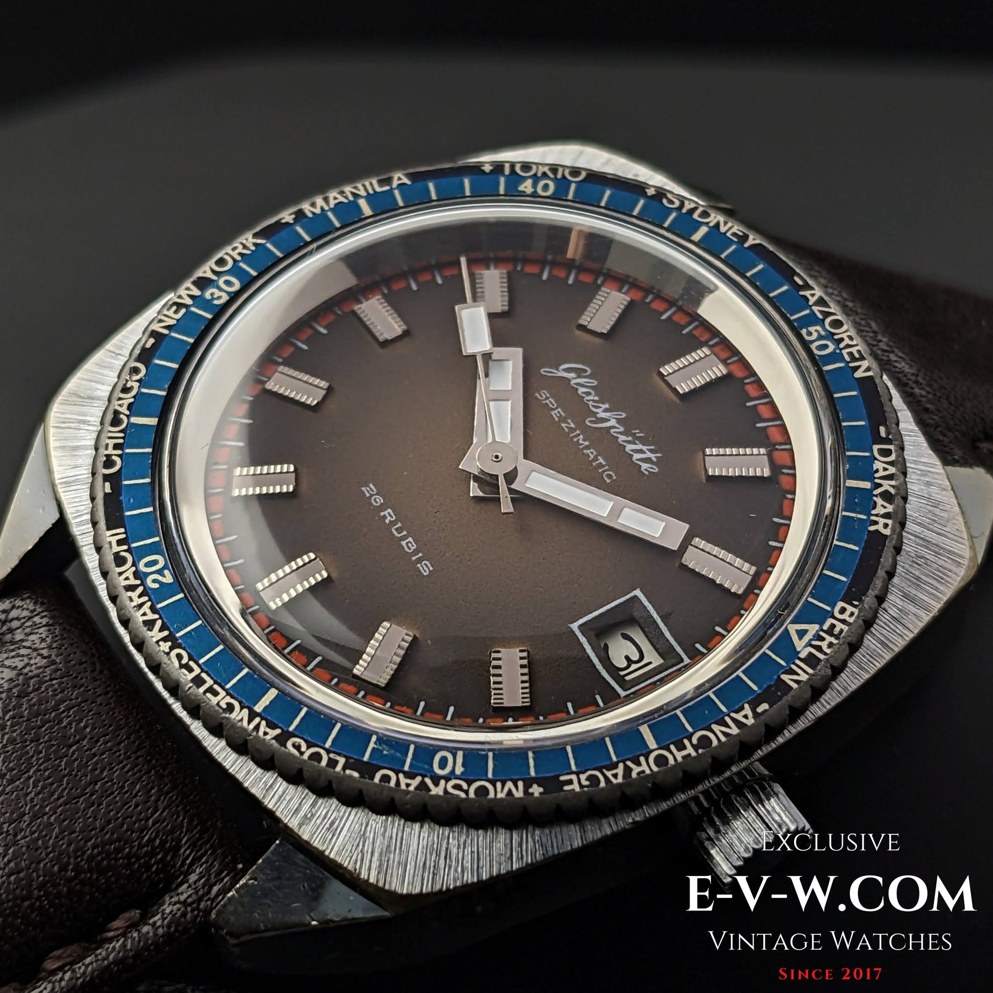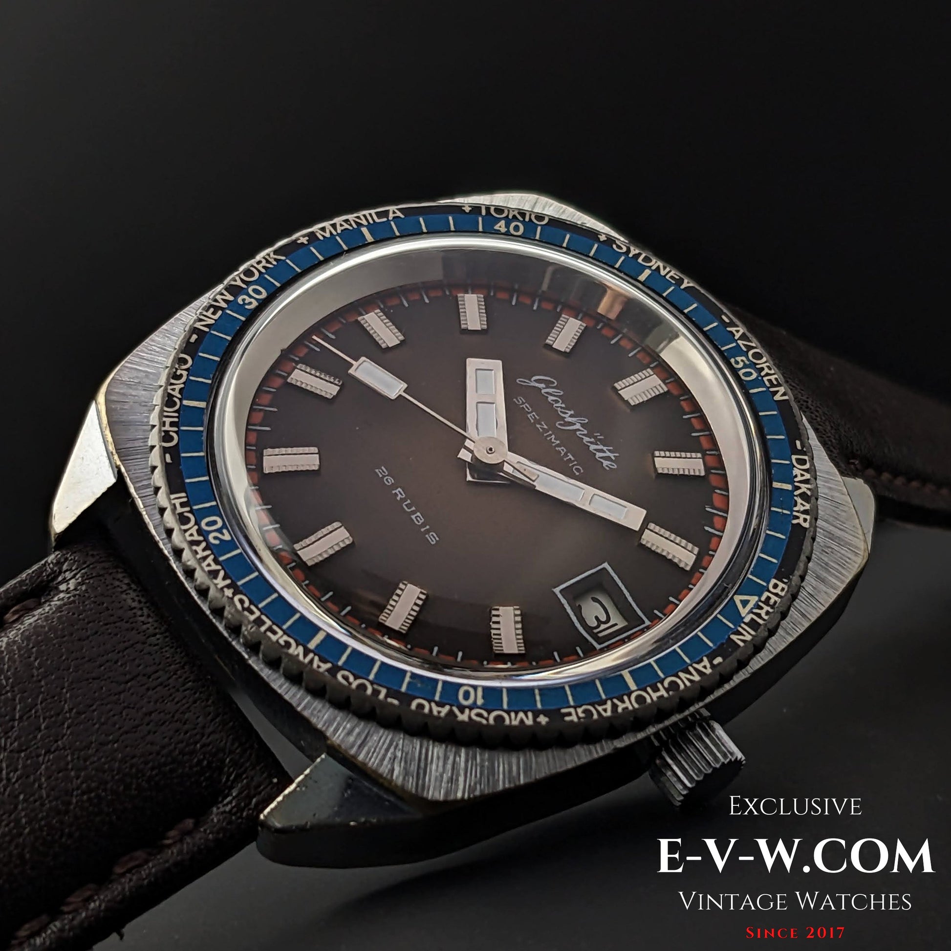 Rare GUB Glashütte SPEZIMATIC WORLD TIME / 26 RUBIS Automatic cal 75 / Vintage 1960s