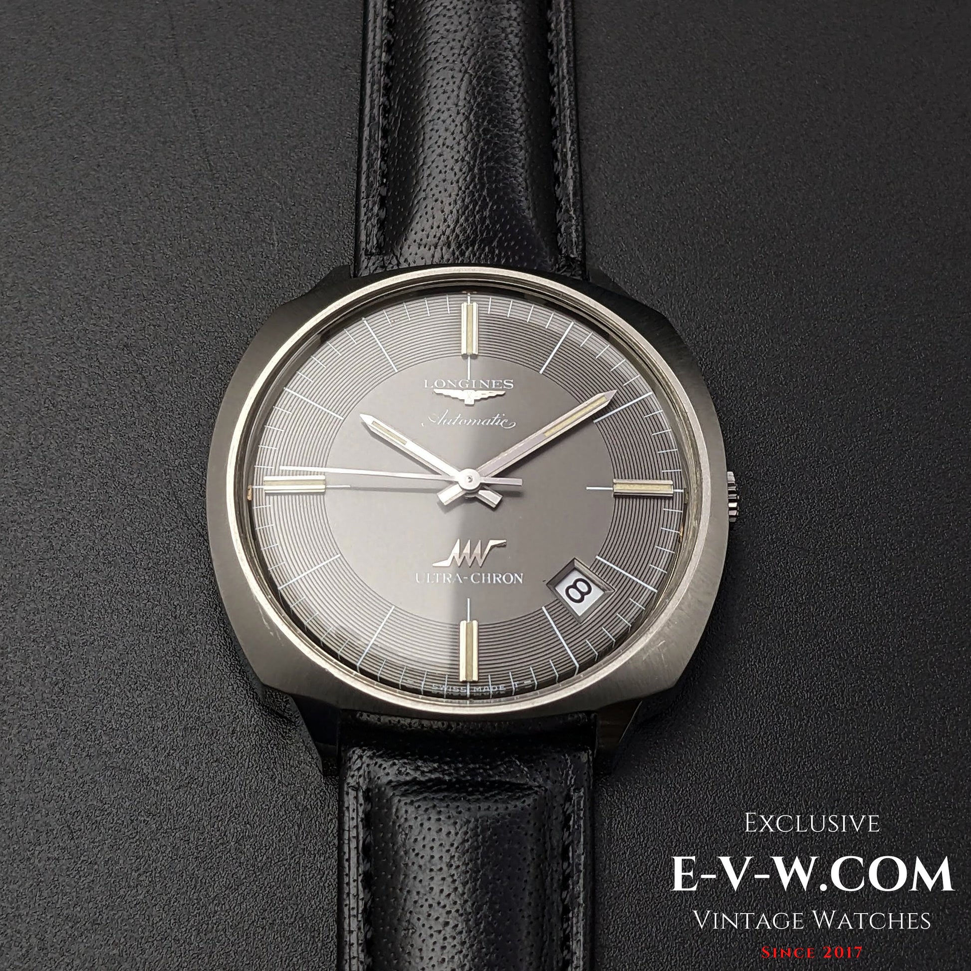This ultra-rare Longines watch features a 38mm jumbo vintage 1970 design, driven by ULTRA-CHRONE Automatic with Kif-Ultraflex anti-shock movement to ensure accurate timing every time. An impeccable timepiece, perfect for vintage connoisseurs.