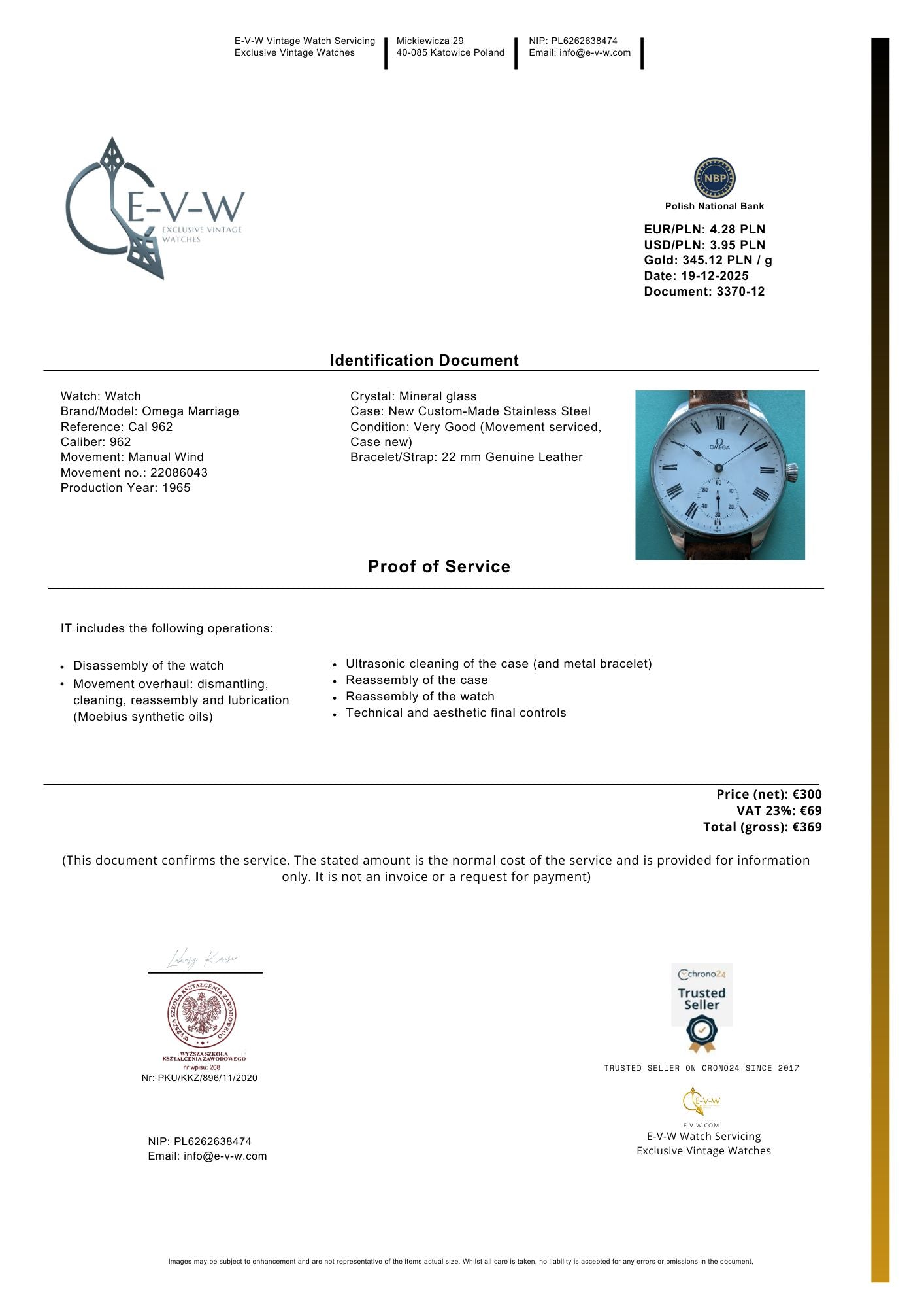 📄 An official service certificate is provided, listing key technical and identifying details — ideal for insurance, provenance, or future resale.