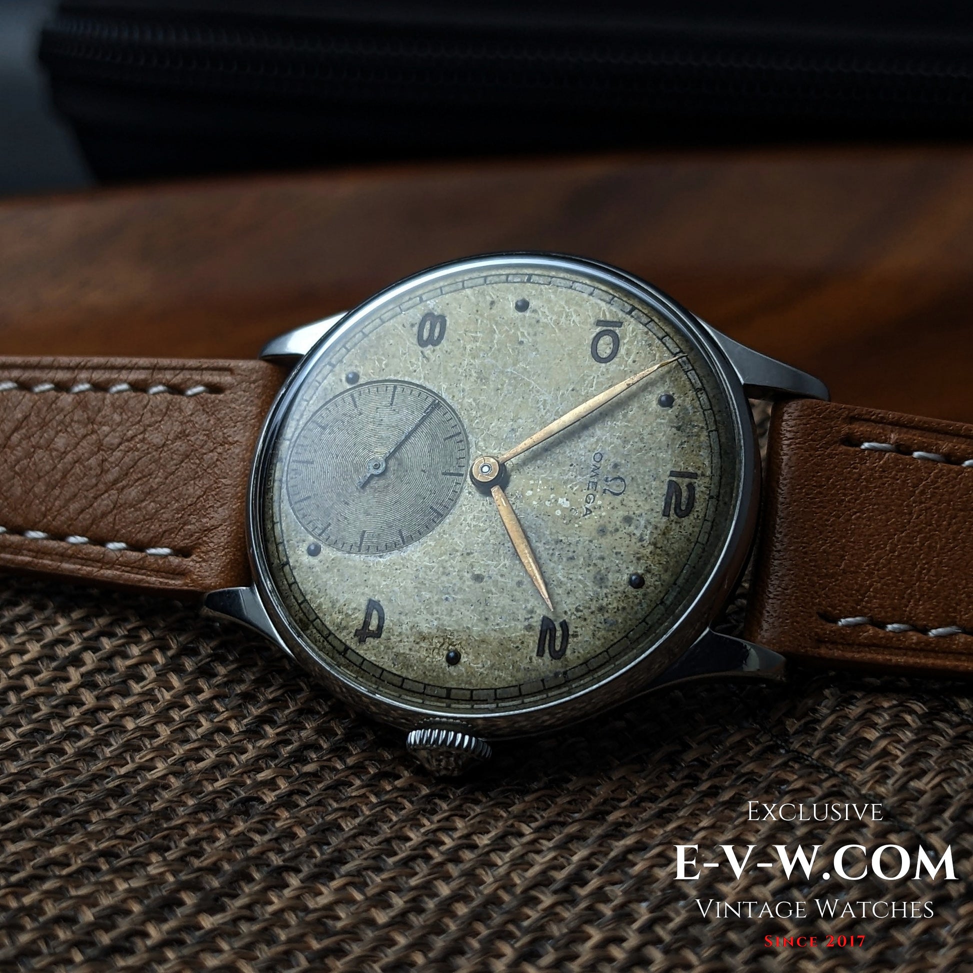 81 years old Wartime WWII Civil Omega 30T2 PC in steel with honest patina — freshly serviced and ready to wear.