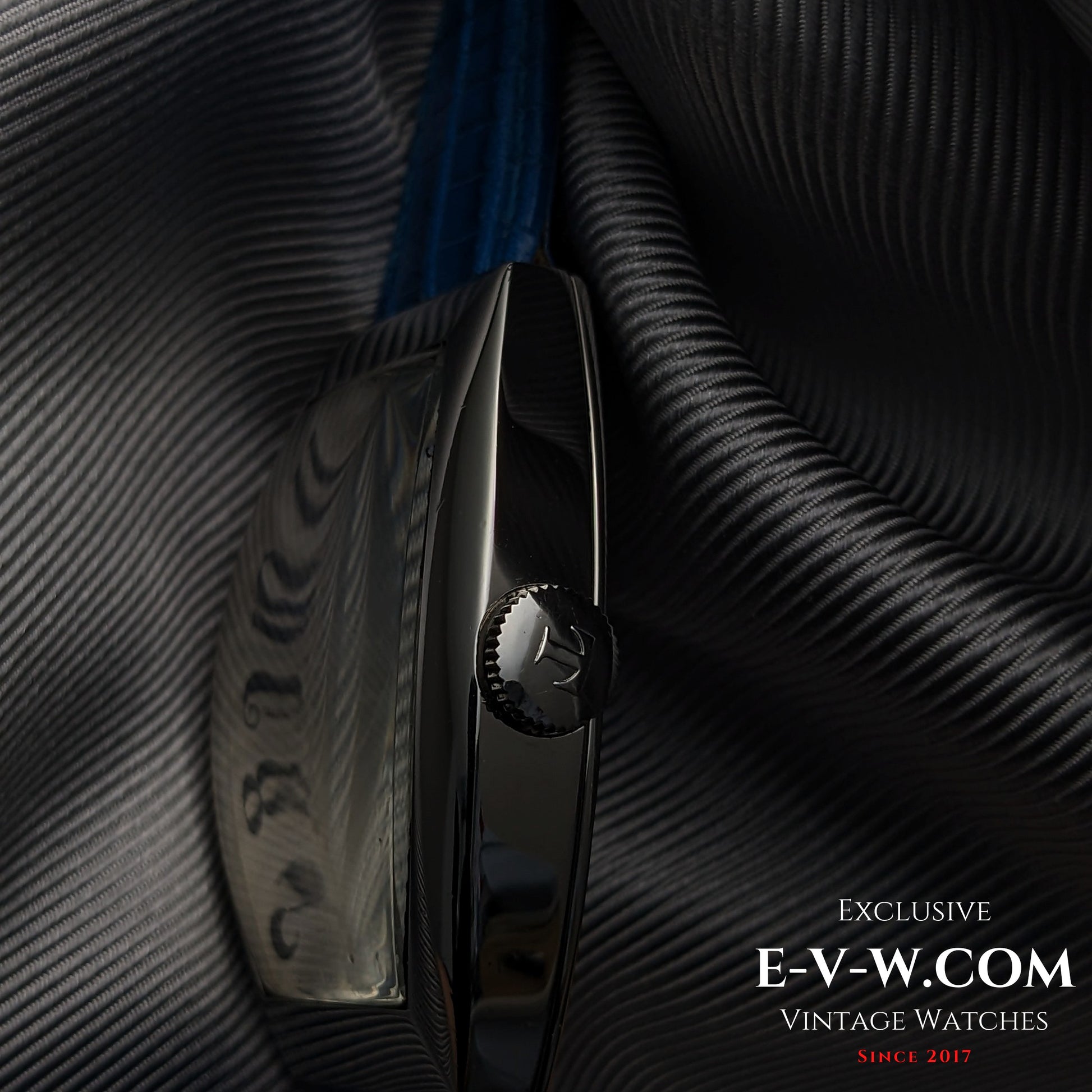 Box/Case: Secure black travel watch case.
