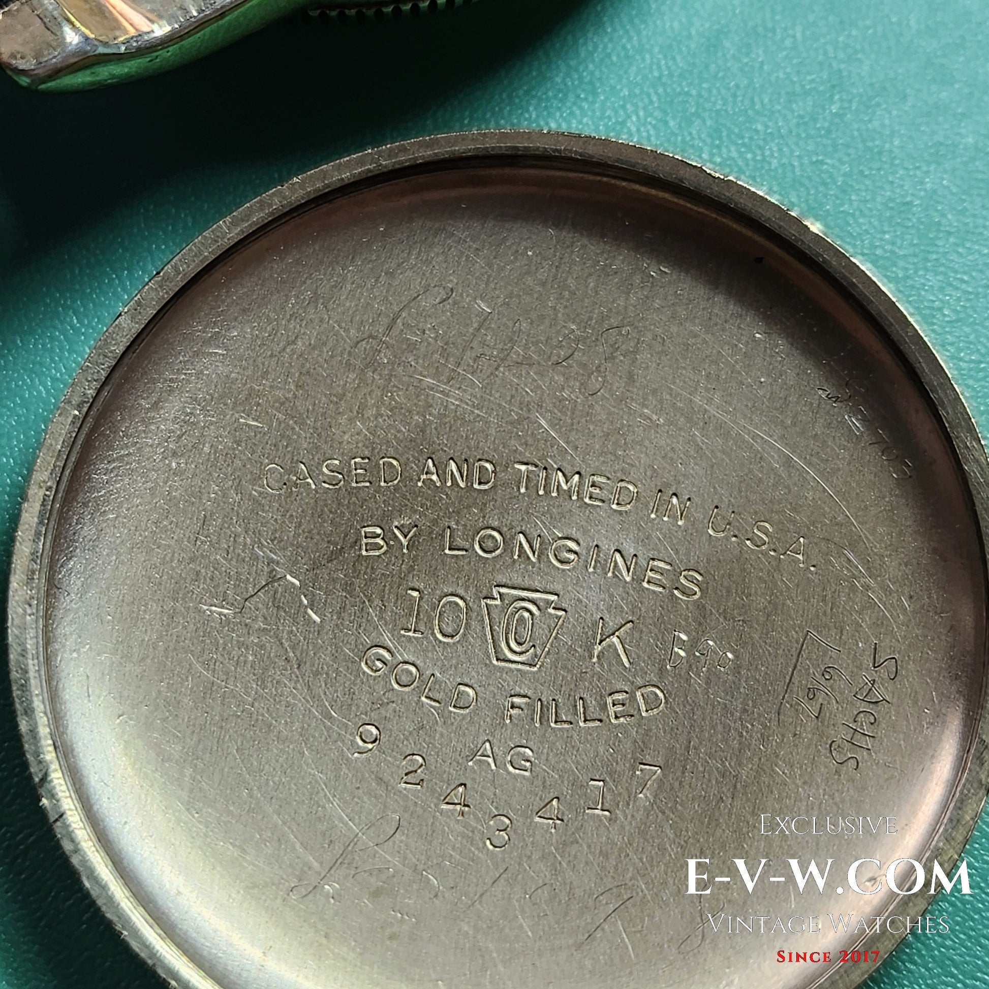 Case: 10K gold-filled AG U.S.-market case, 'Cased and Timed in U.S.A. by Longines', snap back, honest wear.